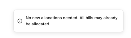 After allocation completes, a notification shows how many bills were allocated and how many could not be matched.